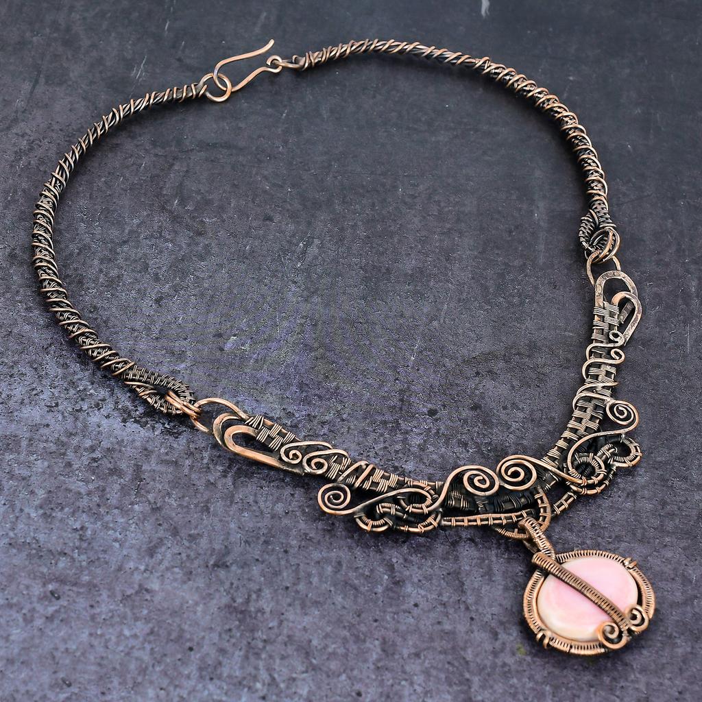 Pink Opal Handmade Copper Wire Wrap Jewelry Necklace 18" G2a91