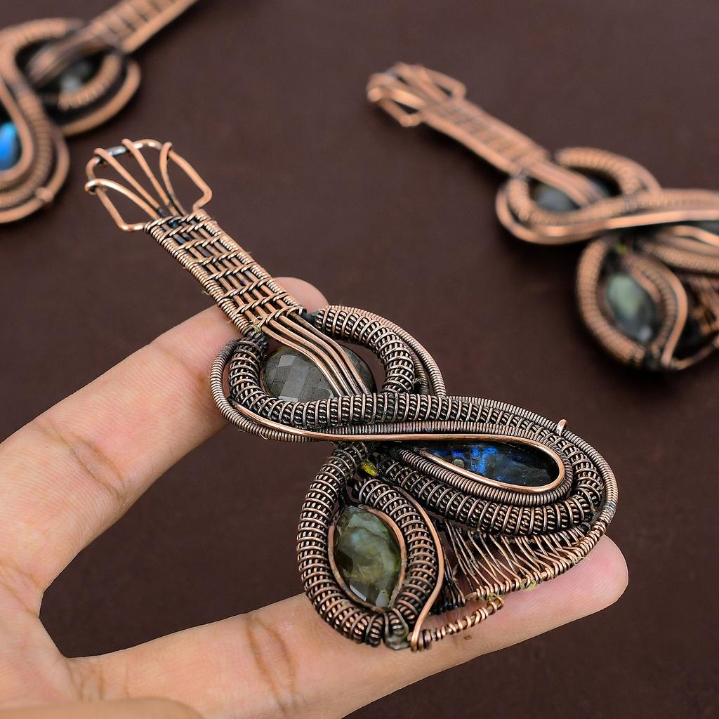 Labradorite Handmade Copper Wire Wrapped Guitar Pendant 4.3" I5I03