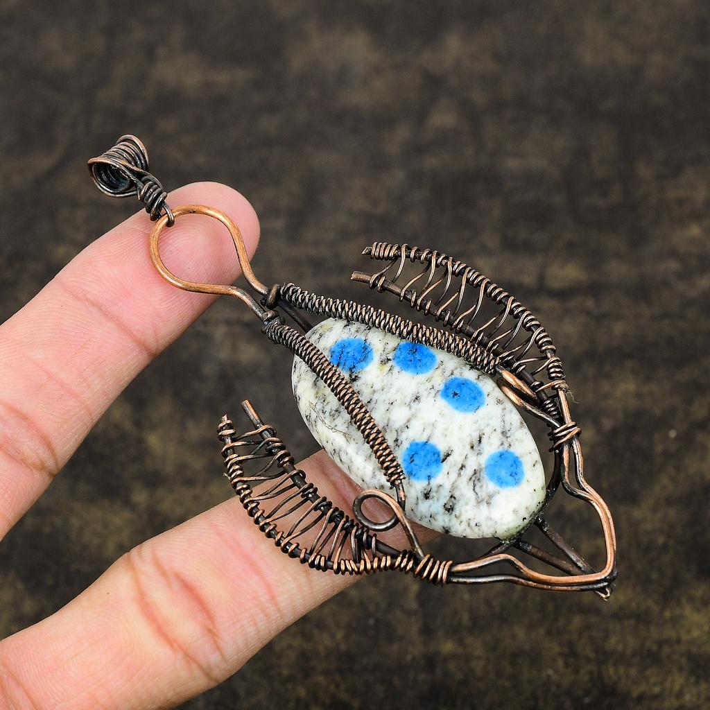 K2 Blue Azurite Handmade Copper Wire Wrap Jewelry Pendant 3.98" l5W67