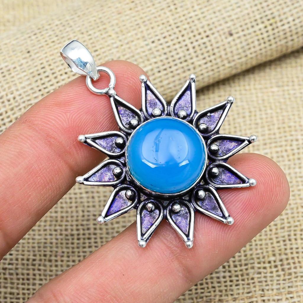 Blue Chalcedony Gemstone 925 Sterling Silver Handmade Jewelry Pendant For Thanksgiving Gift