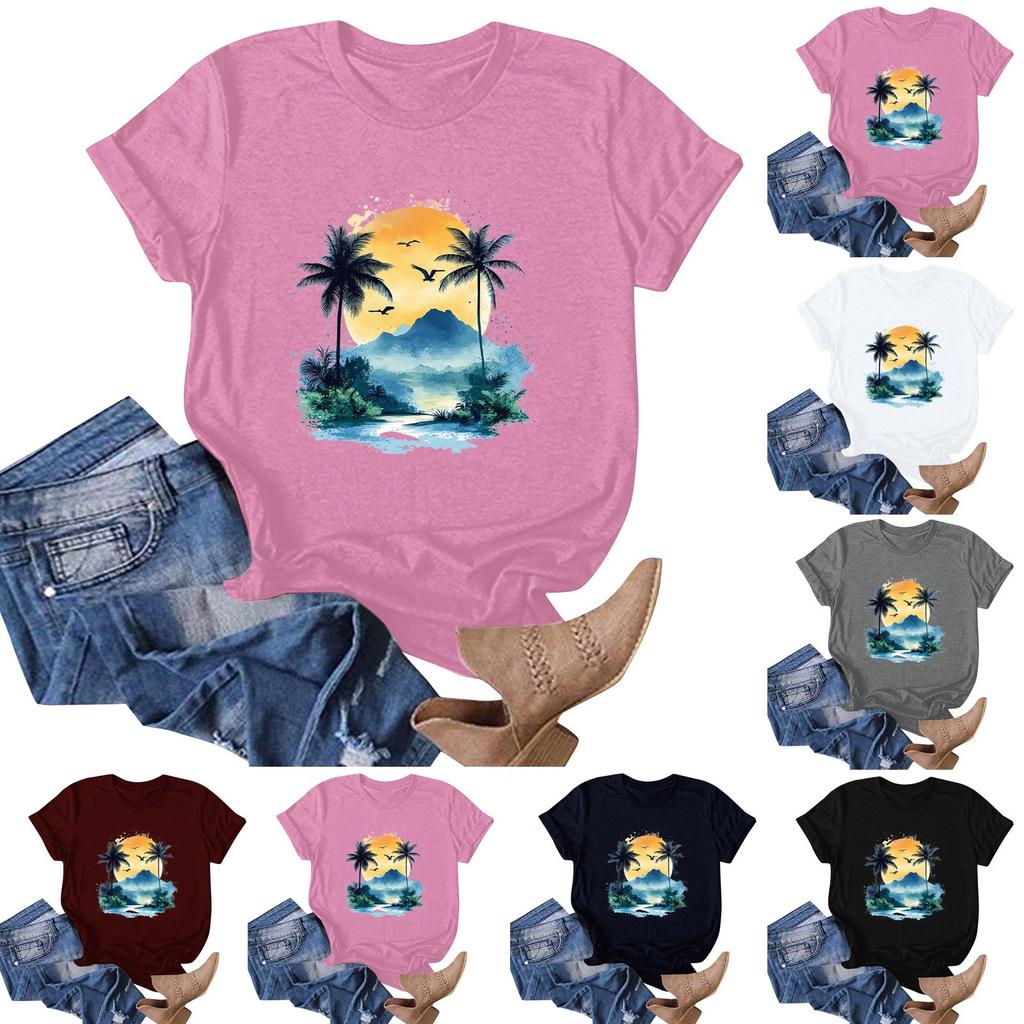 Women's Hawaiian Floral Print Short Sleeve T-Shirt Top