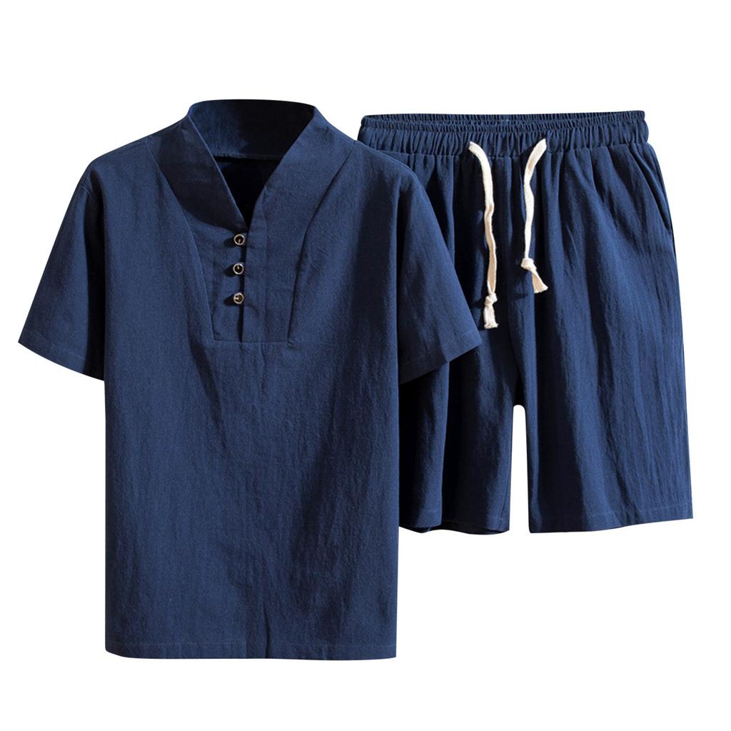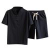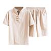 Men's Summer Solid Color Cotton Linen Two-piece Thin Short-sleeved T-shirt + Shorts Suit