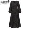 QICED Women's Ruffled Mini Floral Maxi Dress Long Sleeve V-Neck Casual Dresses