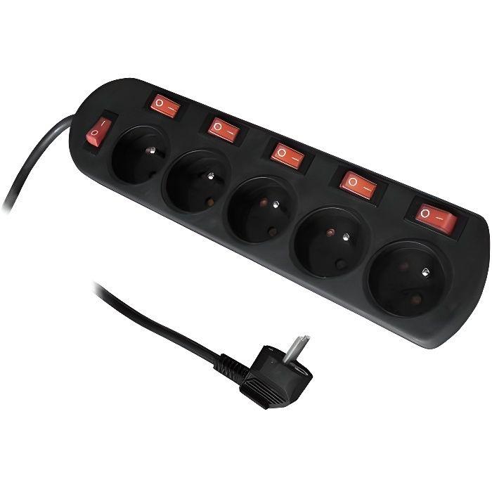 Multiprise - inotech - bloc 5 prises - 16a - noir - 6 interrupteurs
