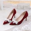 Wedding Shoes Women's 2024 Main Wedding Dress White High Heels Burgundy Xiuhe Bridal Shoes Mid Heel Plus Size Single Shoes