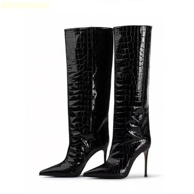 Women's Knee High Boots 2024 New Pointed Toe Thin High Heel Winter Party Shoes Ladies Black Zipper Long Boot Footwear Big Size