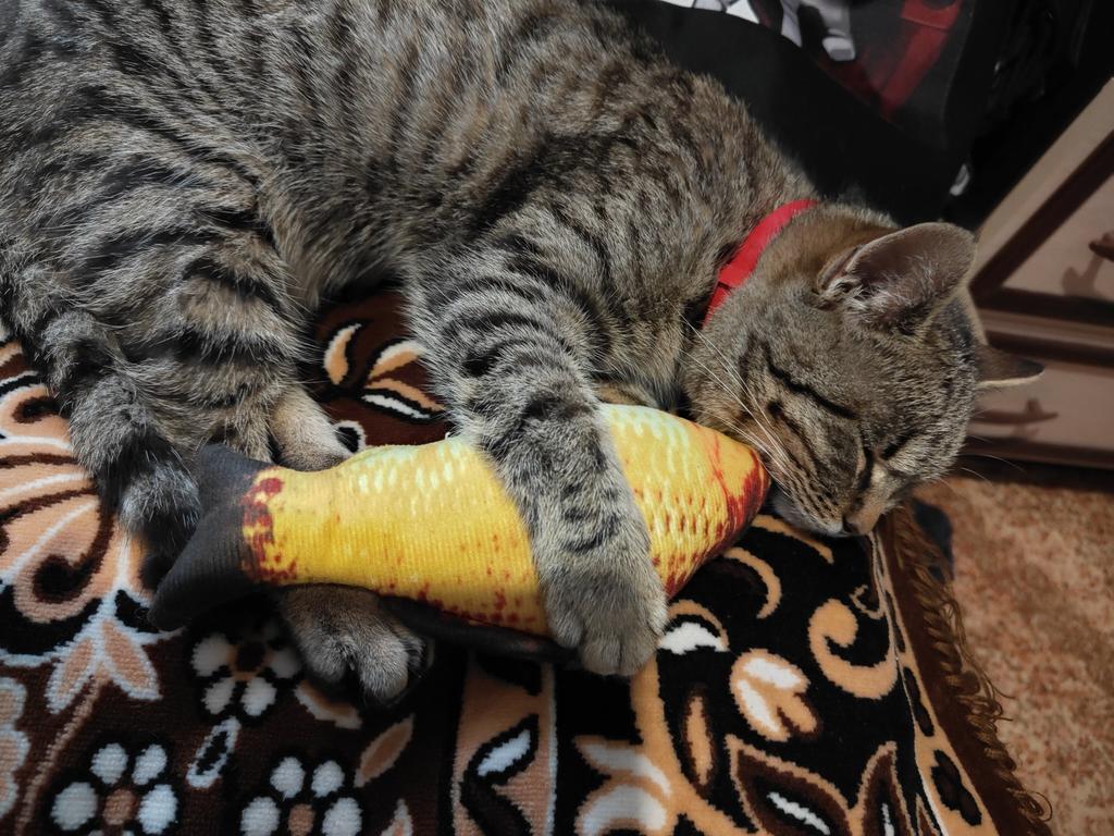 The fish immediately appealed to our kitty. The scent of mint is noticeable. It's amusing to watch the cat. I recommend it for purchase.