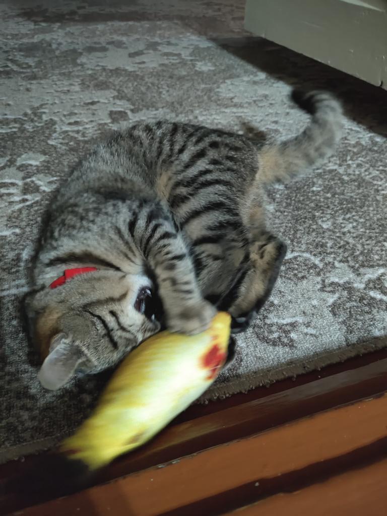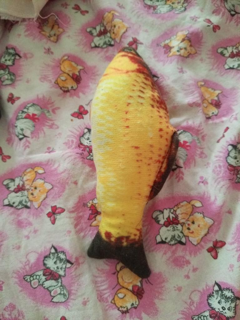 The fish is cute, the cat didn't understand what it was at all.