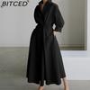 BITCED Women Casual Loose Long Dress Turn-down Collar Long Sleeve