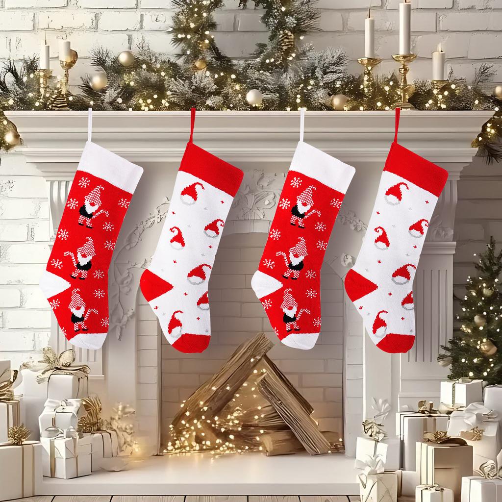 Christmas Knitted Christmas Stockings Red And White Old Man Gift Bag Christmas Tree Pendant Children'S Gift Candy Bag