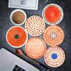 6 Pcs 4in Abstract Round Wooden Coasters Heat Resistant Non-slip Drink Cafe Decoration 2D FLat Color Print Orange Coasters Set