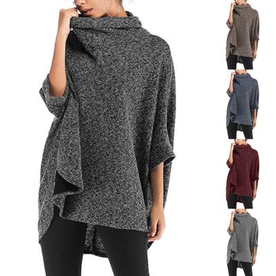 Women's Fashion Temperament Casual Button Turtleneck Irregular Sweater Cape Cape Coat