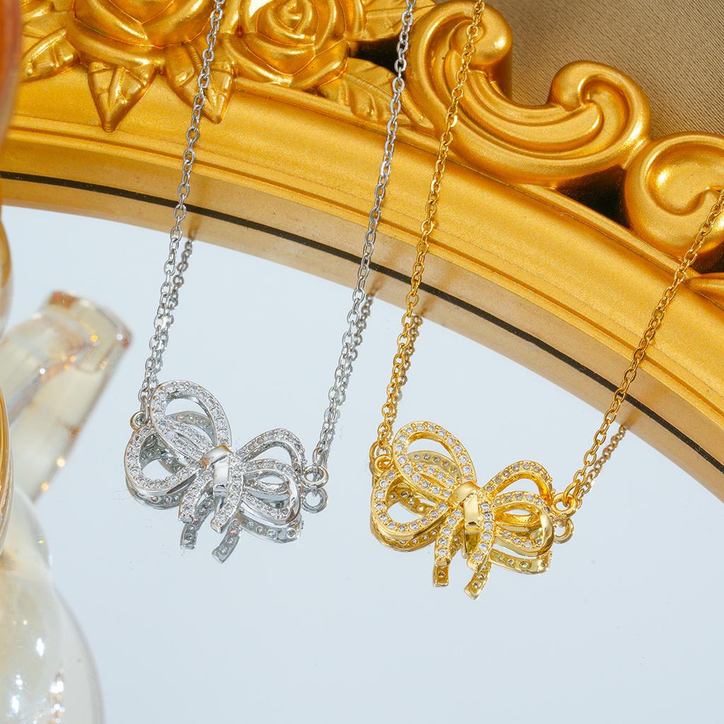 Full Diamond Bow Necklace Jewelry Fashion Girl Collarbone Chain