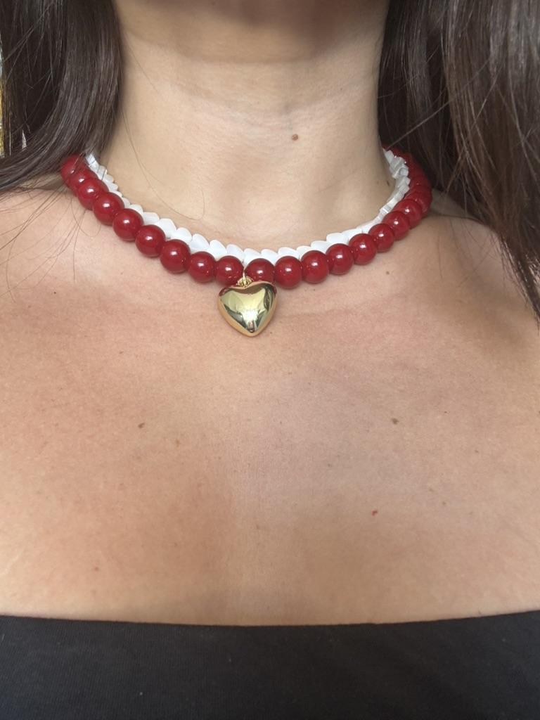 INS Red Heart Pendant Necklace Women's Light Luxury Retro Design High-end Versatile Daily Casual Elegant Neck Jewelry
