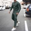Men's Daily Casual Solid Color Long Sleeved Pants Round Neck Set