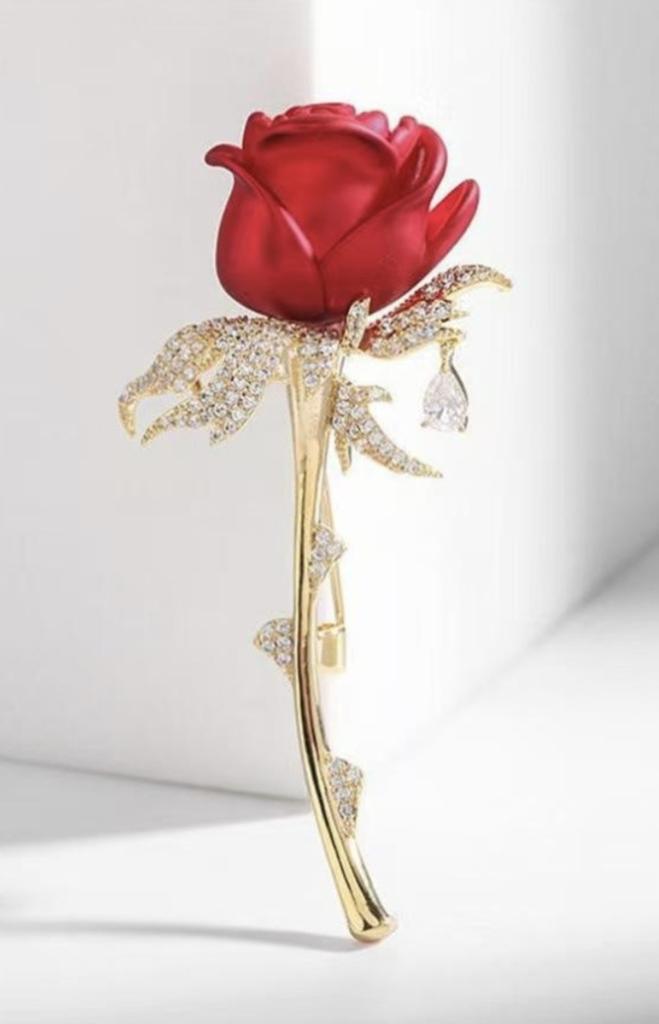 Autumn/Winter Luxurious Atmospheric Coat Accessories Chest Flowers High-end Feeling Fixed Pins Fully Inlaid Zircon Rose Brooch