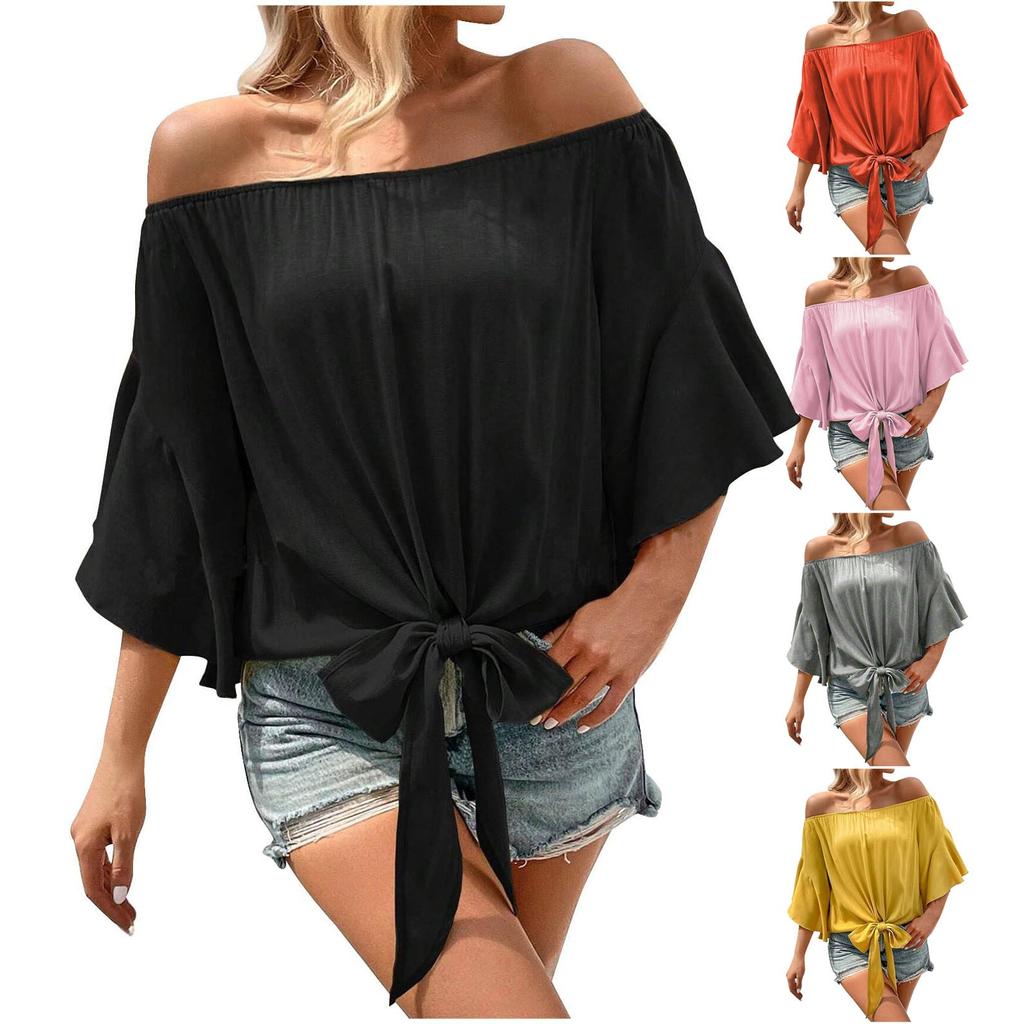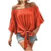 Women's Pleated Off The Shoulder Flowy Tops Sleeve Tie Knot Casual Vacation Blouse Ruched Shirts Plus Size