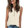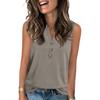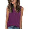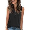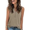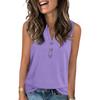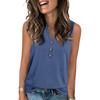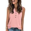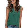 Women's Casual Fashion Summer Solid Color Tank Top V-neck Sleeveless Button Top