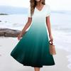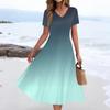 Women's Summer Casual Fashion Print Pocket Short Sleeve V-Neck Swing Dress