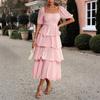 Elegant and Refined Style Cake Dress Square Collar Dress for Women's Spring and Summer