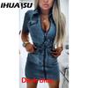 IHUASU Women's Fashion Short Sleeve Zip Up Denim Dress Summer Spring
