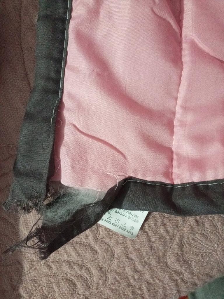 This is not cotton. Some kind of synthetic very thin fabric, the filling is two millimeters. The seams are not sewn all the way through, they are coming undone. This is not a blanket, not even a bedspread. This is a bad quality sheet. It's just terrible how they deceive us.