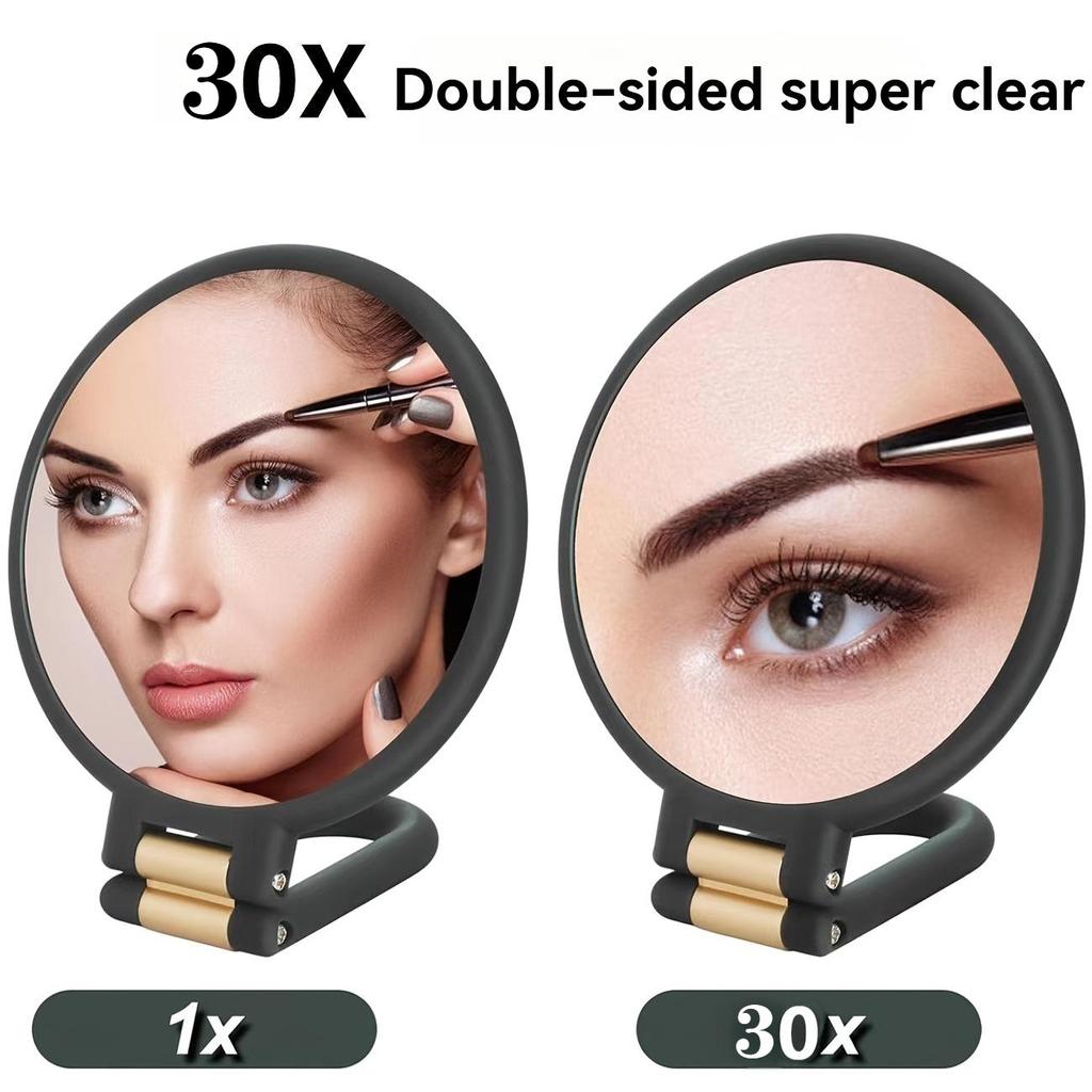 30X Magnifying Makeup Mirror, Handheld Double-Sided Folding Mirror, One Magnifying Glass and One Standard Glass, 360-Degree Rotating Adjustable Handle