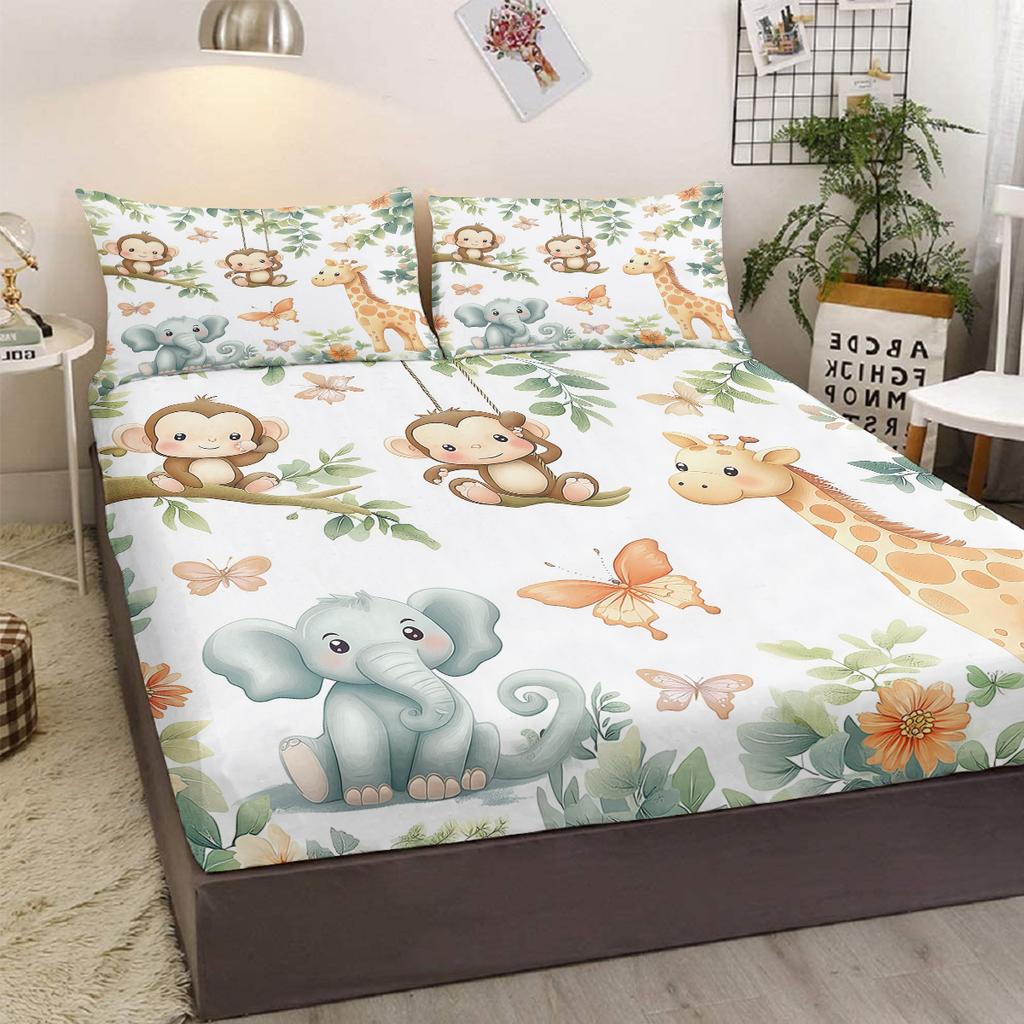 Bed Linen Set Of 3 Pieces For Garden Animals, With Two Pillowcases, Suitable For Bedroom (Cartoon, Garden, Decor)