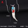 Turquoise, Wolftooth, Stainless Steel Necklace Retro Red Coral Inlaid Pendant Ornaments Accesssories for Women