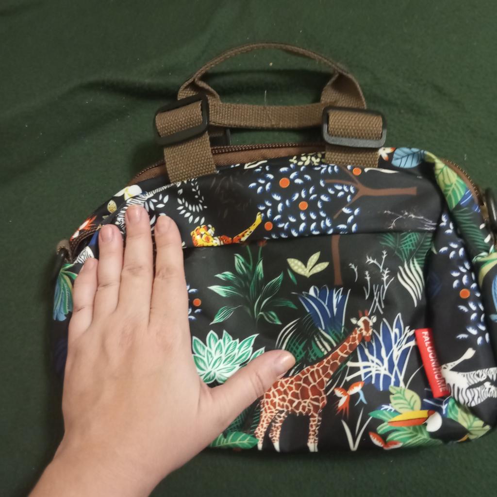 The handbag is nice. Small (many pockets and compartments). Suitable for young girls, young women. For summer and early autumn