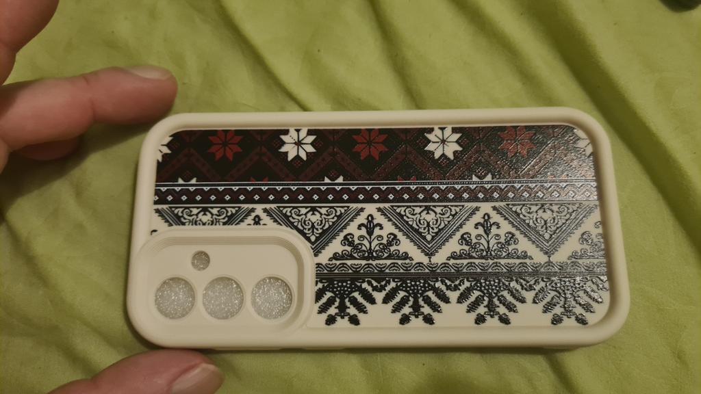 The case is approximately as I imagined it. How quickly the pattern will wear off will be seen later, but for now it is new - pretty! A plus for me is that there are separate "windows" for the camera. The case is quite thick, massive, but it seems reliable to me. Well, and patriotic)