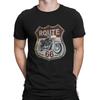 Men's Vintage Motorcycle Printed Short Sleeved T-shirt with US Route 66 Pattern T Shirt Cotton Round Neck Tee Casual Women Shirt