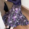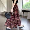 2024 French Retro Floral Pleated High-Waist Maxi Chiffon Skirt