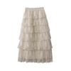 Spring French Embroidered Layered Ruffle High-Waist Long Skirt for Women