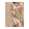 Women's Summer 2025 French-Style Floral Suspender Dress: Waist-Slimming Seaside Holiday Skirt