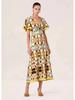 Women's 2023 Autumn V-Neck Tassel Splice Backless Long Dress with Lace-Up Waist