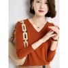 Embrace the changing seasons with this elegant V-neck pullover sweater, designed for style and comfort during early autumn. Crafted from high-quality polyester, this sweater offers a soft and smooth texture that feels gentle against the skin. Its loose fit provides a relaxed yet chic look, perfect for layering over your favorite tops. The solid pattern and long sleeves add a timeless appeal, while the fringe decoration adds a playful touch. Ideal for both casual outings and cozy gatherings, this sweater effortlessly combines comfort and style.