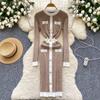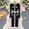 Winter Senior Retro Knitting Dress O Neck Buttons Design France Elegant Skinny Chic Female Autumn Casual Sweater Midi Dress