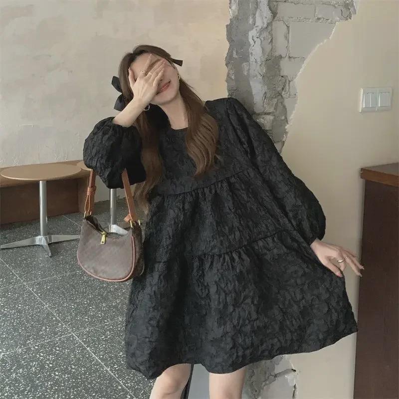 This plus-size retro long-sleeve A-line dress is perfect for female students looking to embrace Korean style. Designed for spring and autumn wear, it combines comfort and elegance with its flattering silhouette. The dress is crafted from high-quality polyester, ensuring durability and a soft feel. Its timeless design and versatile look make it a must-have addition to any wardrobe.