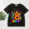 Game Sprunki Birthday Number T-Shirt Girl Boy Short Sleeve T-Shirts Summer Casual Kids Tops Black Tee Cartoon Toddler Clothes