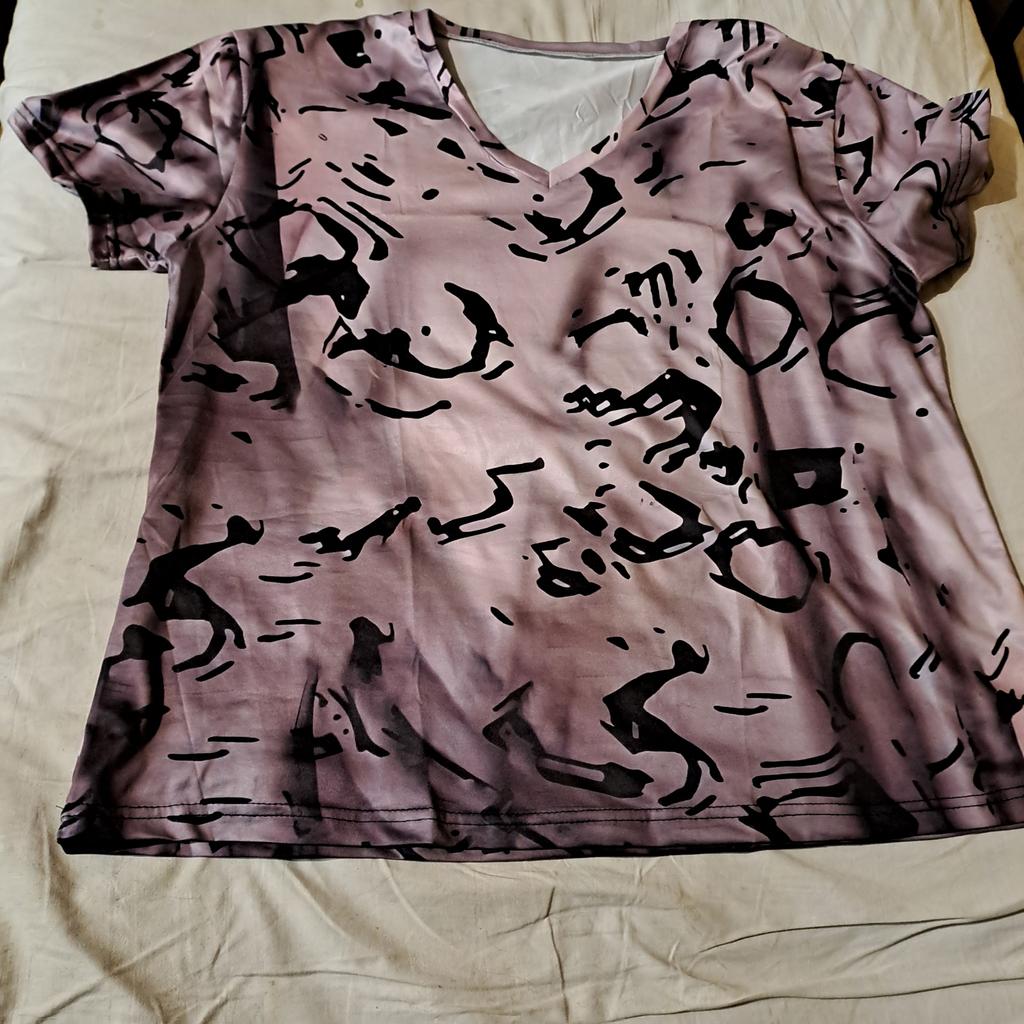 Plus Size Short Sleeve V Neck Allover Print T-shirt, Casual Top For Summer & Spring Women's Clothing