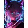 Neon Anime Cat Girl Posters Prints Canvas Painting Manga Neon Canvas Wall Art Pictures for Modern Home Girl Bedroom Game Decor