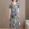 Elegant Long Dresses for Women Plus Size Loose Short Sleeve Vintage Dress Summer Middle-aged Women's Clothing