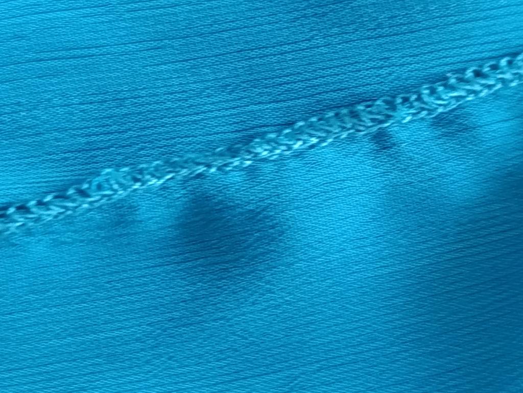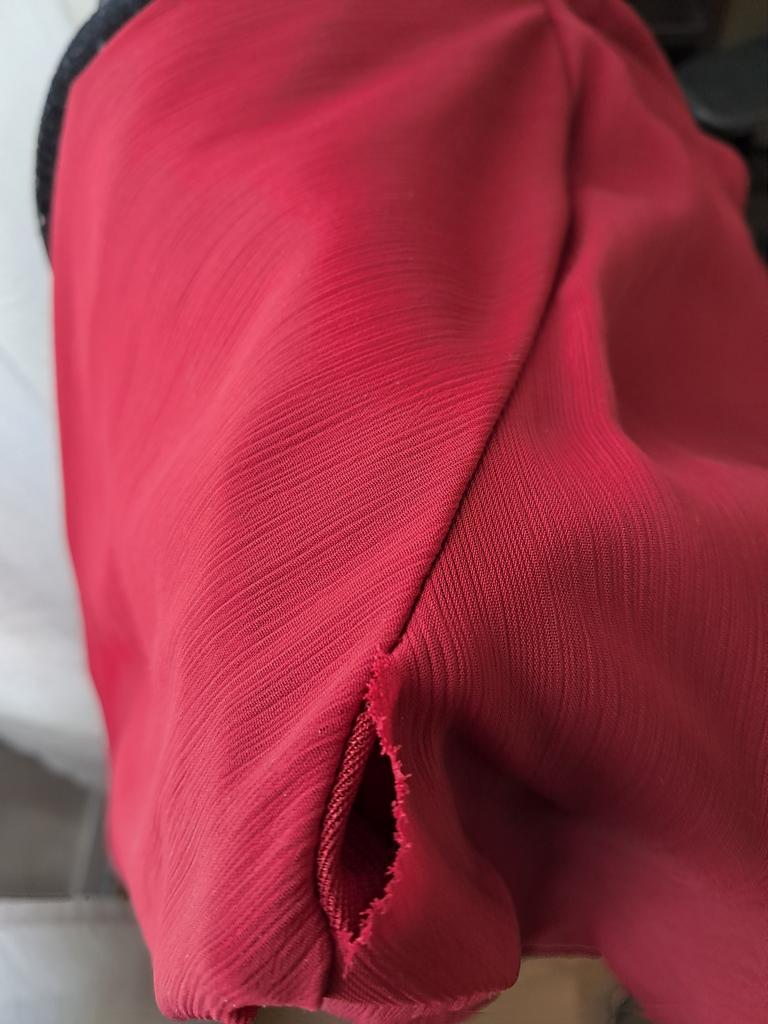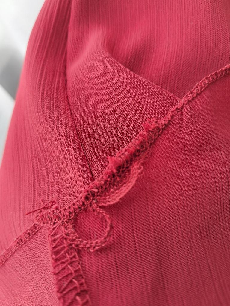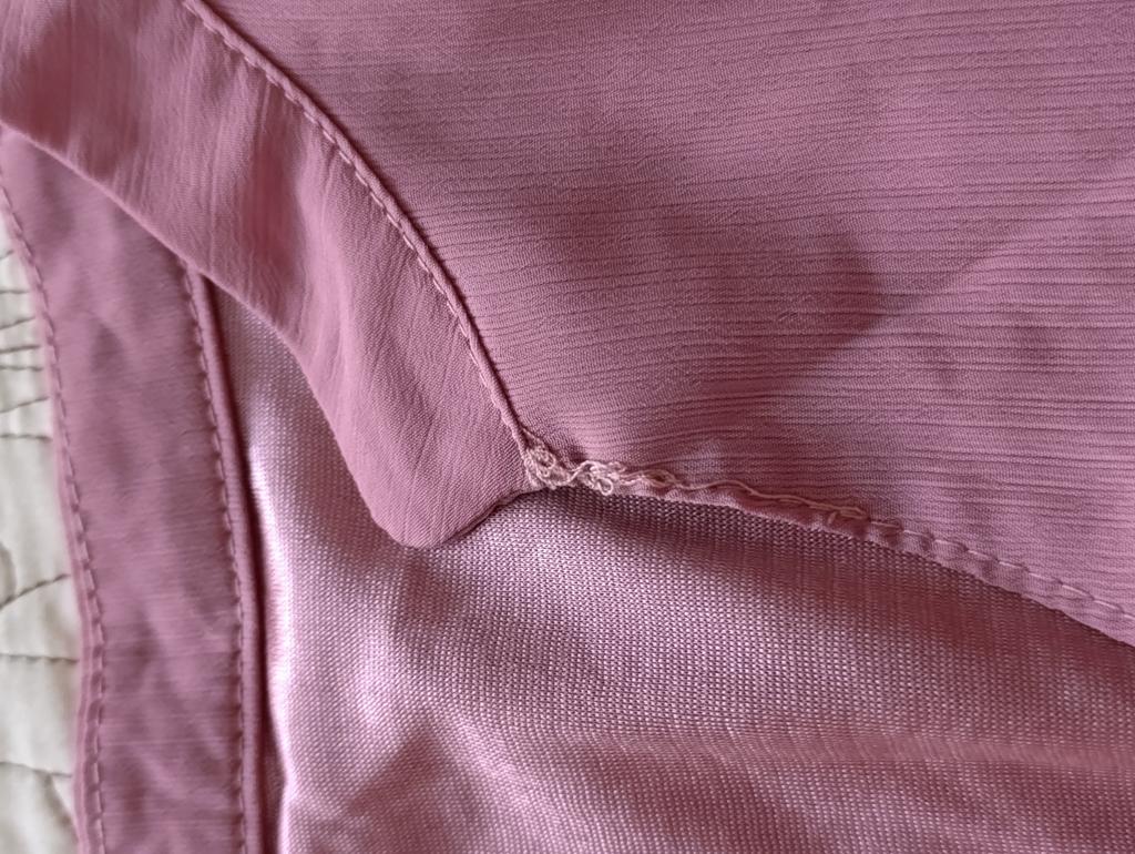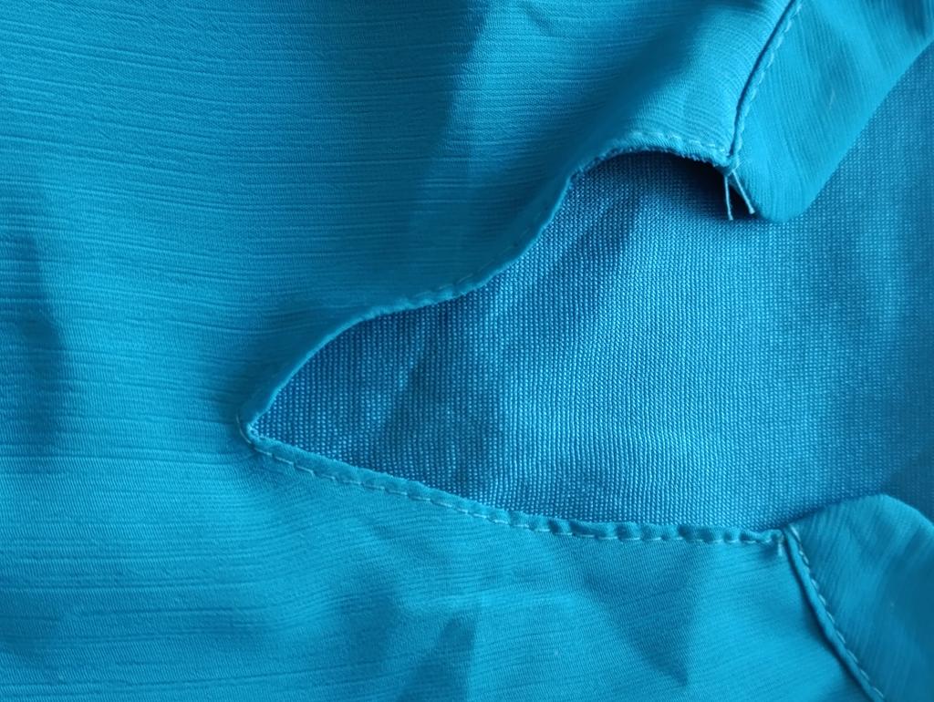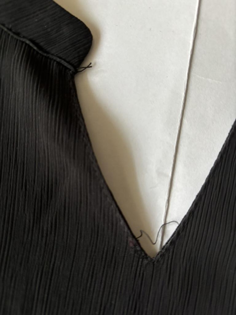 The neckline of the blouse is uneven, the stitching is uneven. Return.