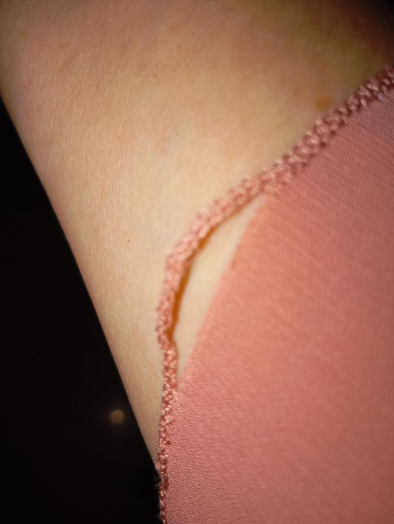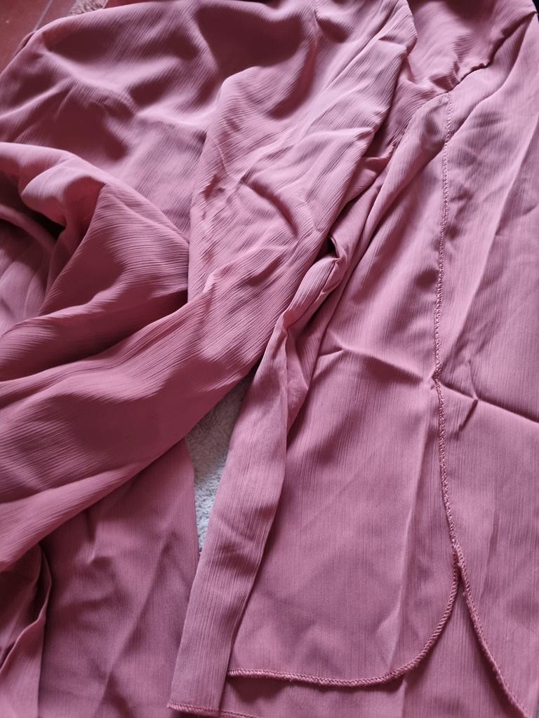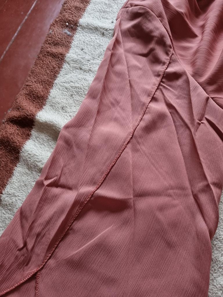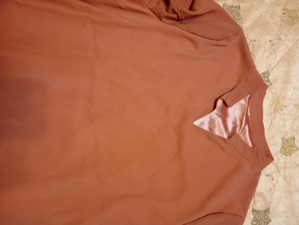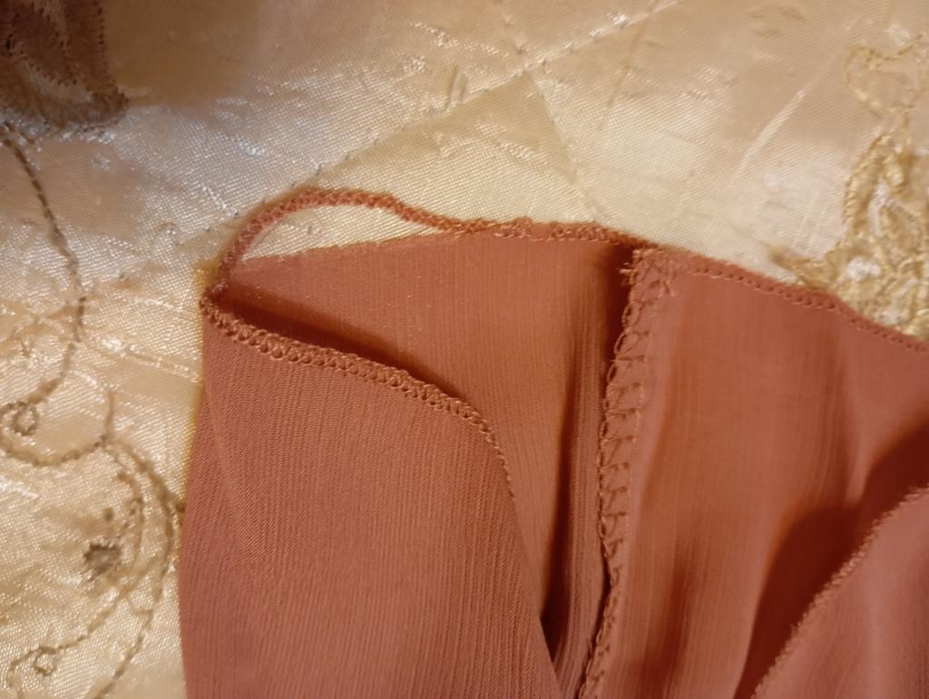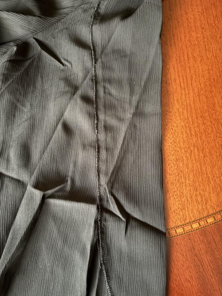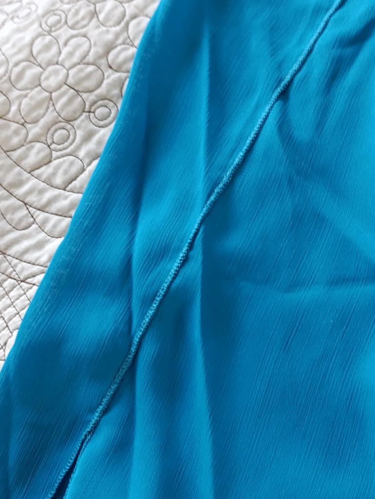 The neckline of the blouse is uneven, the stitching is uneven. Return.