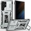 For Samsung Galaxy S25 Ultra Case Kickstand Slide Lens Lid PC+TPU Drop-Proof Phone Cover