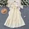 A Slimming Women's Dress with Off-the-shoulder Straps and Ruffles
