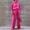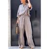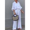 Elegant Office Ladies Suit Casual Solid Color Button Shirt Belt Wide Leg Slit Irregular Pants Sets 2 Piece Set Spring Autumn