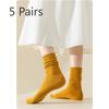 5 Pairs of Female Autumn and Winter Pure Color Pure Cotton Thickened 7A Antibacterial Deodorant Boneless Pile Socks