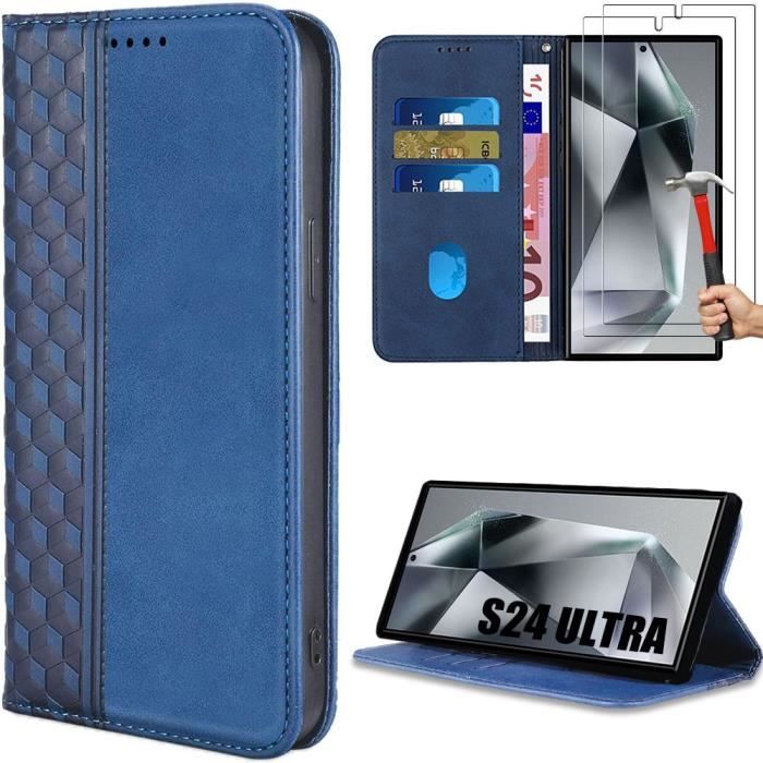 Case - Booling - for Samsung Galaxy S24 Ultra - Scratch Protection - Luxury Synthetic Leather - Navy Blue